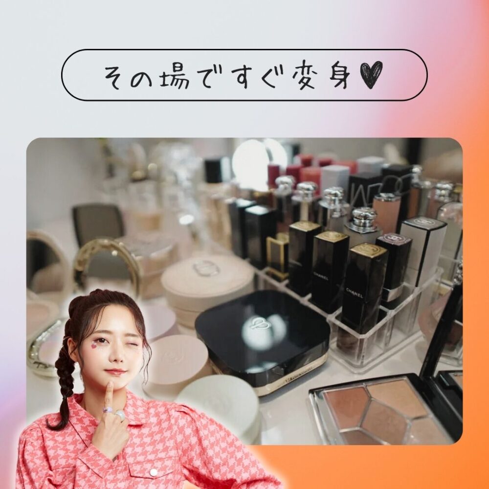 お洋服やメイク道具なども無料で用意しているので、気軽にお越しください💄