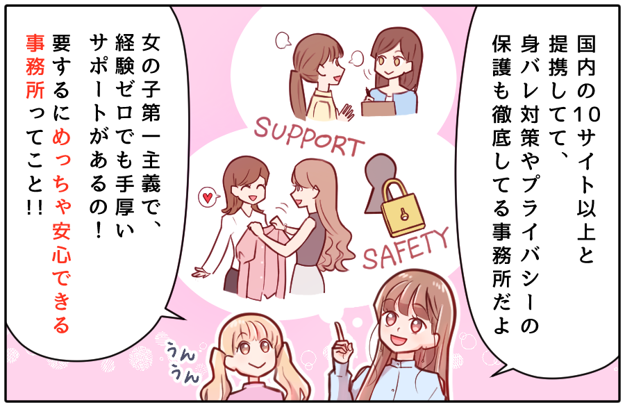 本業とのバランスや、身バレ対策の相談に丁寧に乗ってくれるスタッフさんが魅力です✨