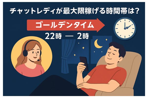 22時〜深夜2時のゴールデンタイムが最も稼げる時間帯です。仕事終わりや寝る前にリラックスしたい男性が多くログインし、アクセス数が急増します。